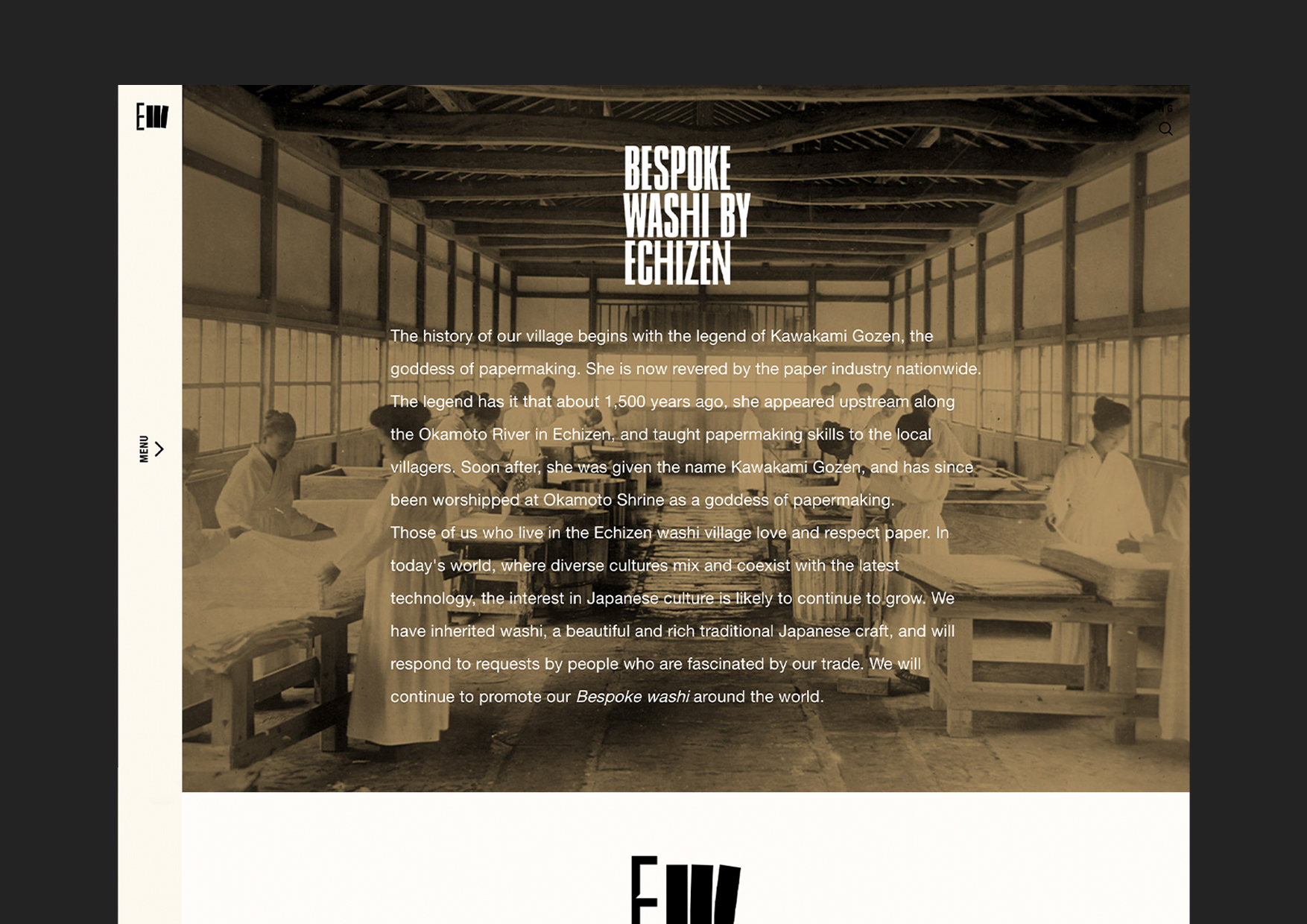 Echizen Washi has more than 1500 years of history and one of the most precious and admired Japanese crafts. The challenge of the new website is to communicate its versatility and the tight-knitted community of artisans that pursues